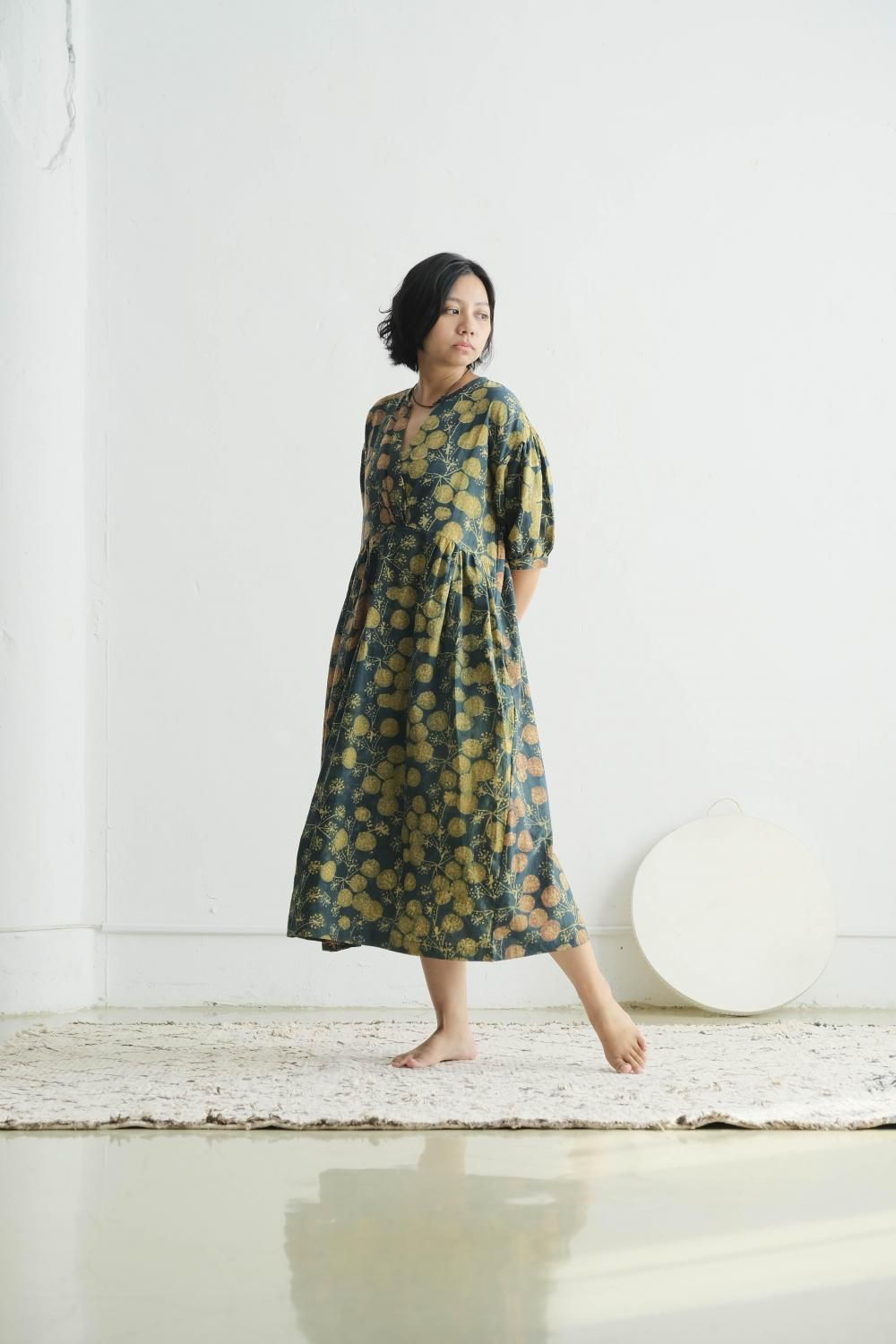 Khadi フロントクロスワンピース B046月花草 flower XOPM-SK25-B046